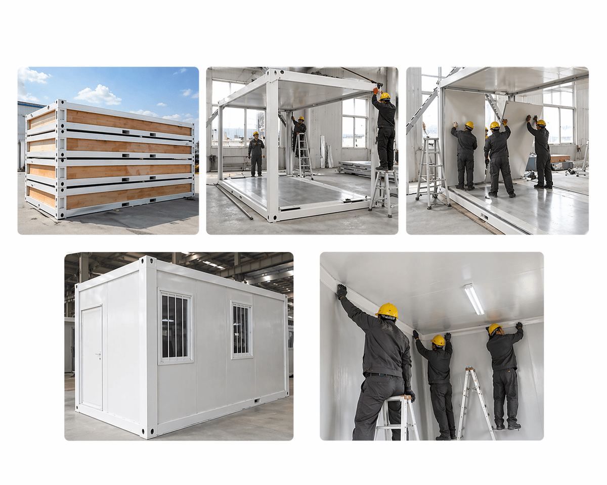 A Flat Pack Container is a semi-prefabricated modular system that bridges the gap between folding and detachable units. The roof and floor frames are 100% factory-completed with integrated drainage and flooring.