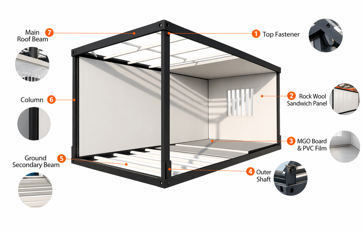 - Integrated Roof & Floor: The most complex components are pre-assembled, ensuring 100% waterproof performance.