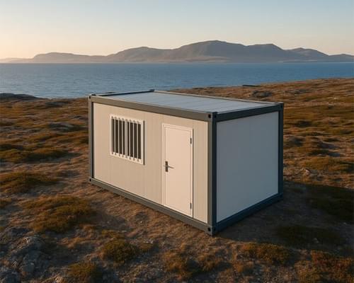 The Z-Fold folding container house with wood grain. Natural teak texture. Military-grade foldin